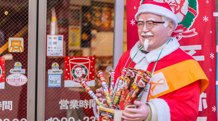 Noël prend une tournure particulière au Japon car cette tradition est totalement éloignée de ce que l’on fête dans le reste du monde. Au Japon, le réveillon de Noël est considéré comme un moment privilégié pour les couples et se retrouver entre amis, idéal pour profiter de l’ambiance dans des attractions populaires comme Tokyo Disneyland. Et peut-être plus célèbre encore, grâce à une campagne de marketing astucieuse menée par KFC dans les années 1970, de nombreux Japonais commandent à l’avance du poulet frit pour inaugurer cette période joyeuse de l’année.
